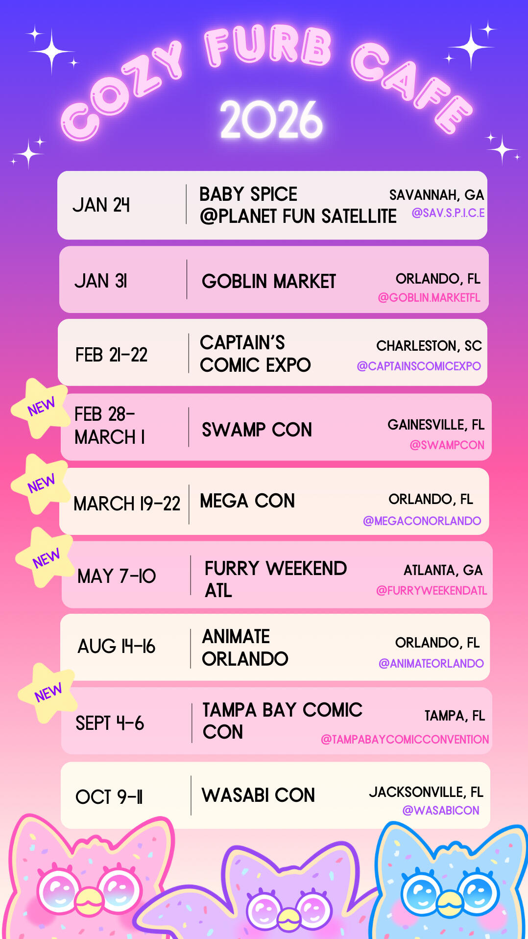 | 1. Savannah Animazing Con | Jan 17-18, 2026 | Savannah, GA |